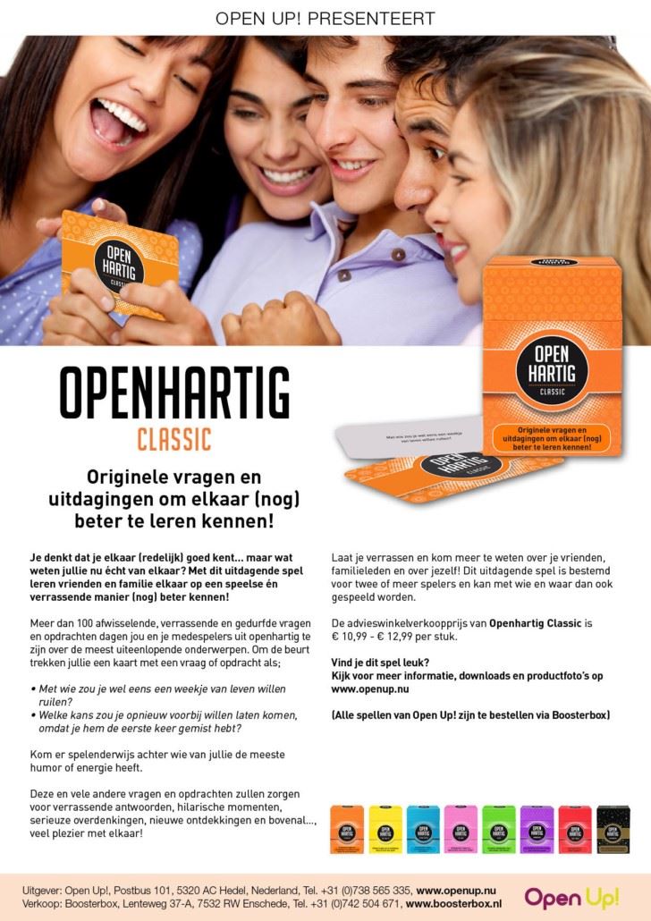 Openhartig classic heeft originele vragen en uitdagingen om elkaar (nog) beter te leren kennen.