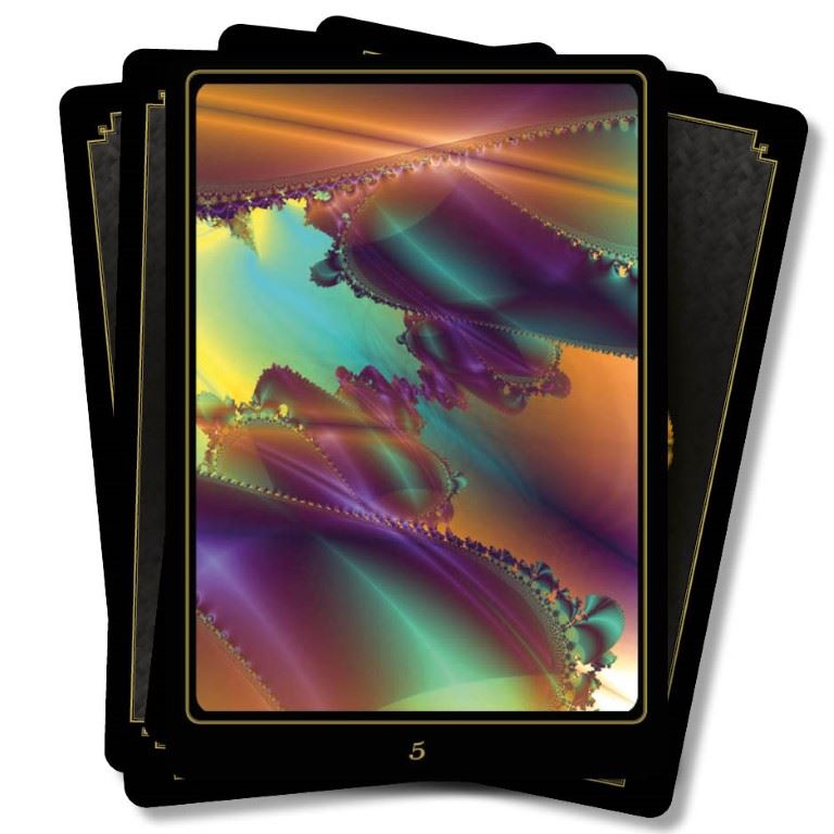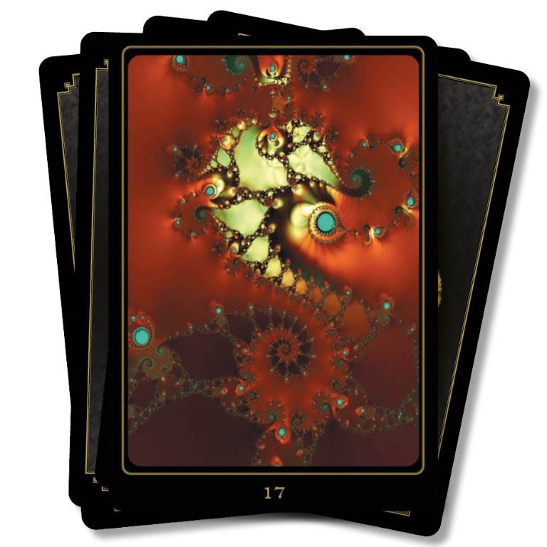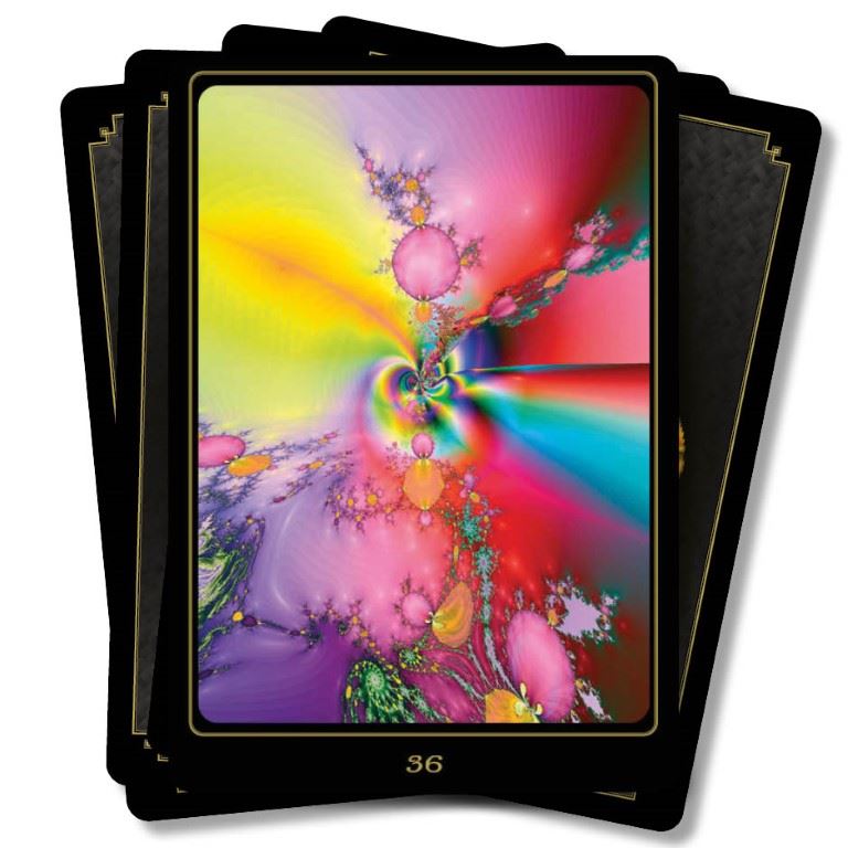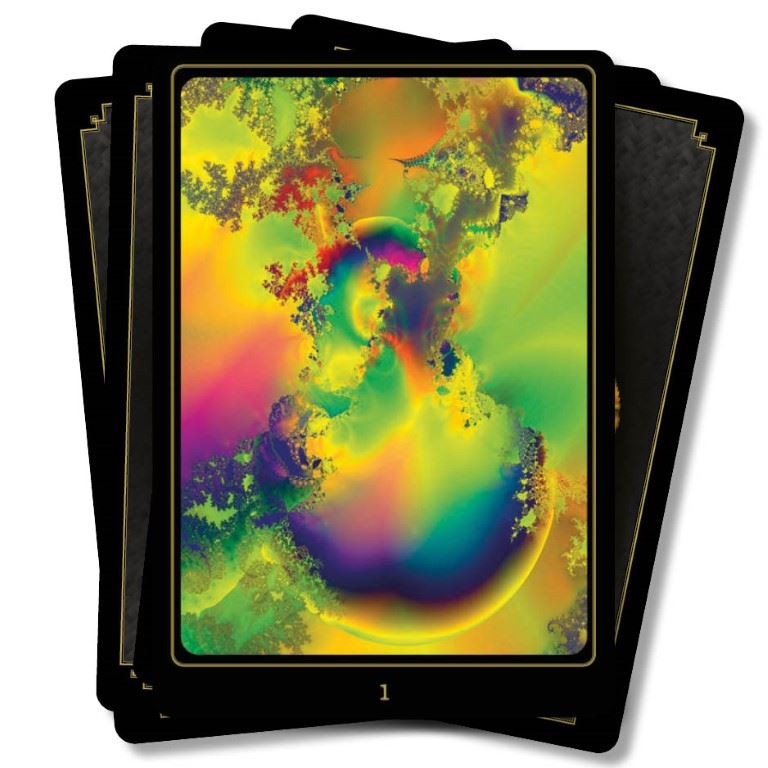 Op elke kaart vind je een afbeelding van fractal-energie.