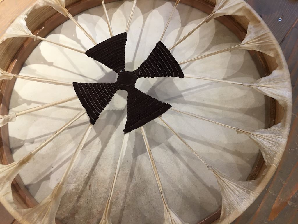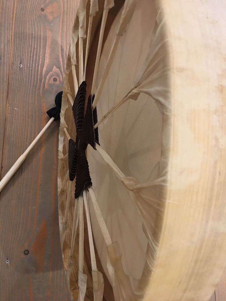 Deze sjamanendrum of sjamanentrommel is een traditionele rituele trommel die veel gebruikt wordt bij ceremoniële gelegenheden en sociale vieringen zoals de PowWow.