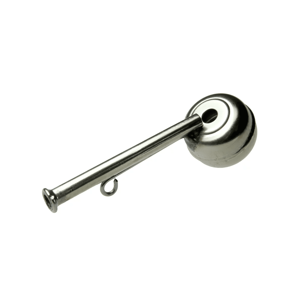 De afmeting van dit metalen klankinstrumentje is ongeveer 8 cm lang en de kop is 2,5 cm breed.