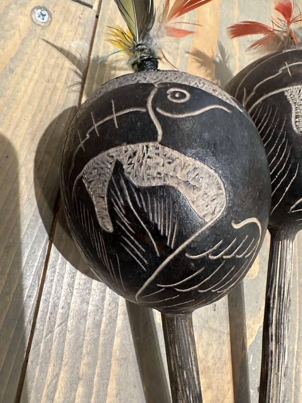 Deze uit Zuid Amerika afkomstige sjamanenratel heeft heel veel verschillende benamingen zoals; peruaanse ratel, maraca of maracca, wingo en shipibo.