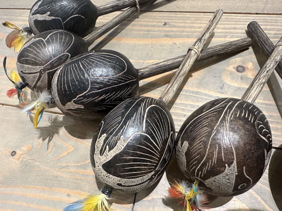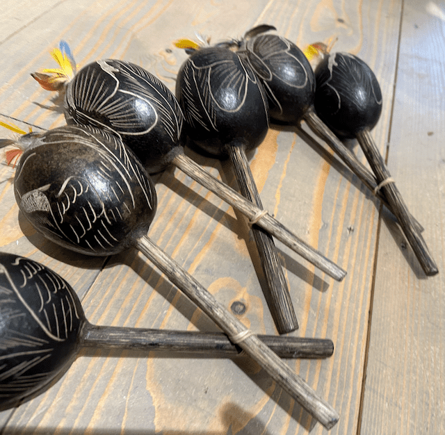 De sjamanenratel wordt ook wel shaker genoemd en wordt vaak ingezet bij sjamanistische rituelen zoals bijvoorbeeld bij Ayahuasca.