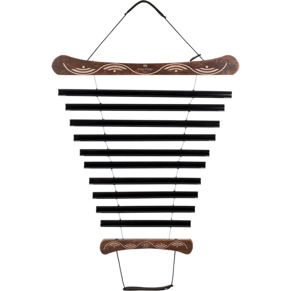 De klankbuizen hangen aan stevige nylon koorden, gecentreerd tussen twee essenhouten houders. De hoogglans zwarte buizen zijn gemaakt van corrosiebestendig aluminium en kunnen afzonderlijk of samen worden gespeeld.