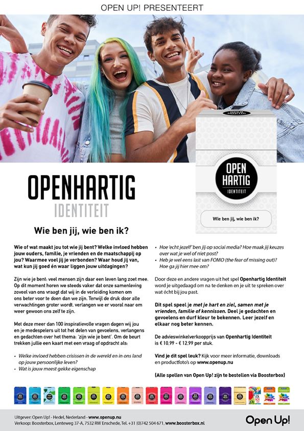 Door deze en andere vragen uit het spel Openhartig Identiteit word je uitgedaagd om na te denken en je uit te spreken over wat écht bij jou past.