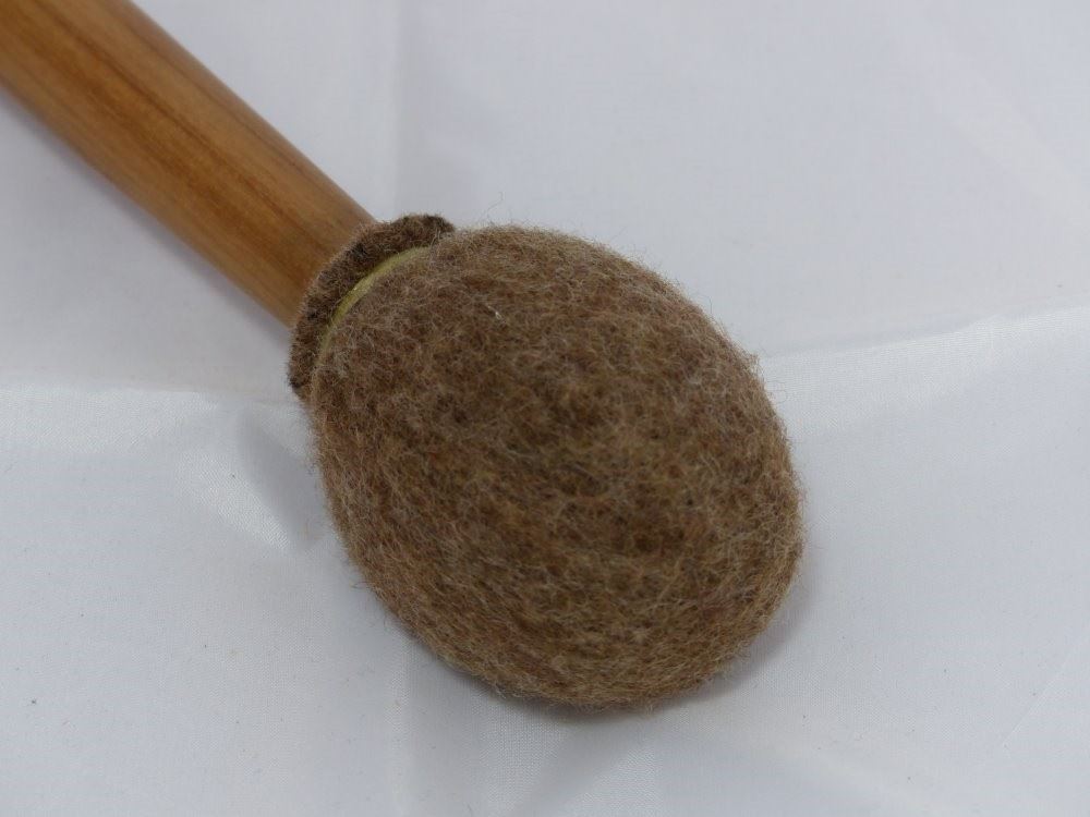 Professionele klankschaal klopper met vilten kop en houten steel.