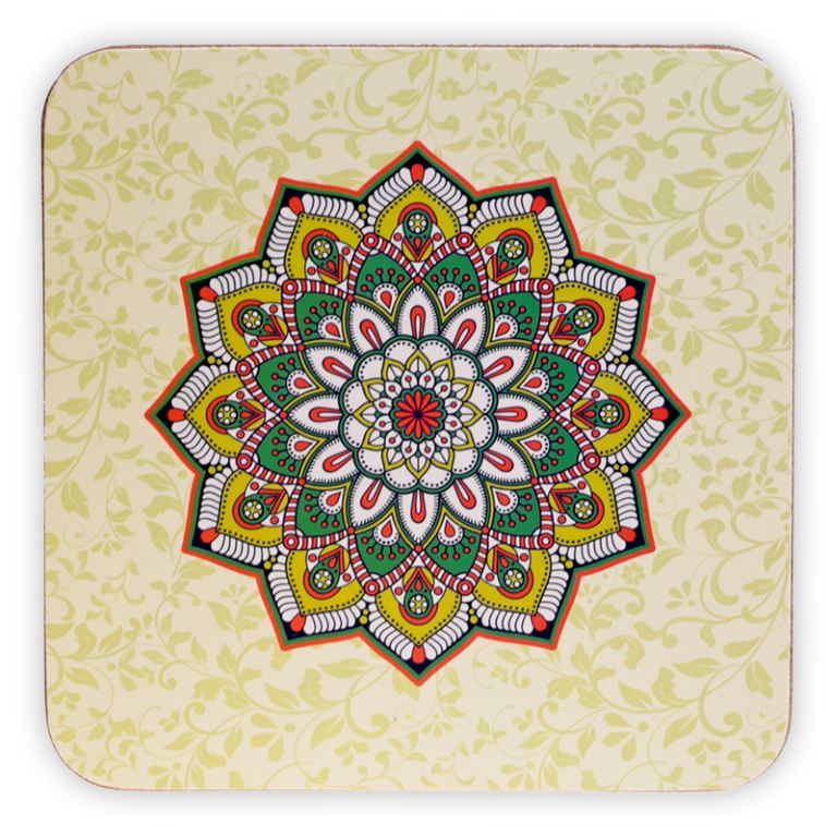 Mandala onderzetters passend bij de thee mokken.