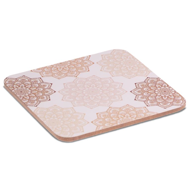 Onderzetters met mandala in de kleur roze passend bij de thee mokken.
