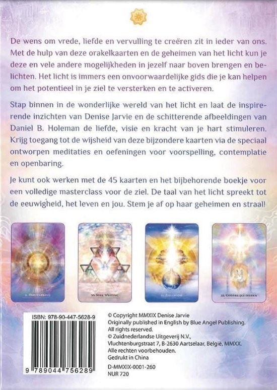 Met behulp van deze orakelkaarten en de geheimen van het licht kun je deze en vele andere mogelijkheden in jezelf naar boven brengen en belichten.